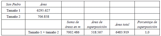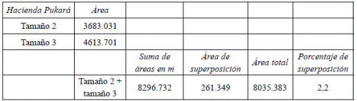 Finalmente, en San Pedro sólo se registraron estructuras de tamaño 1 y 2, y su correspondencia en términos de superposición de áreas (1,0%) resulta bajo en comparación con el resto de los sitios comparados (Tabla 6).