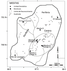 En este trabajo no se pretende minimizar la variabilidad de la organización social entre regiones vecinas, pero hay que tener presente que en algunas zonas tenemos, por el momento, mayor información regional, en tanto que otras ofrecen mayor detalle acerca de tumbas o de unidades domésticas y/o comunidades. Por este motivo, la información regional de asentamientos agregados o de sitios proveniente de regiones vecinas a nuestros casos de estudio fue usada aquí como referente alternativo. Esa información debe tomarse, entonces, como un parámetro de abstracción inicial, y las subsecuentes inferencias sobre la sociedad deben verse como síntesis exploratorias.