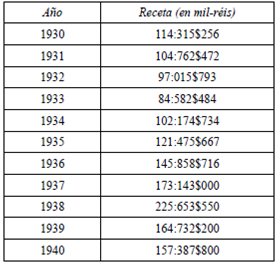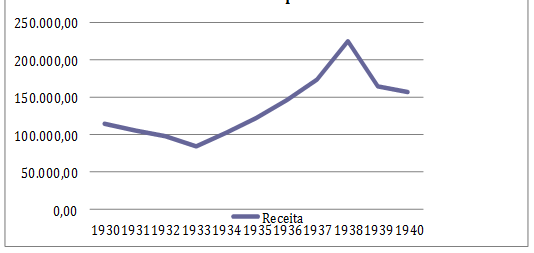 Las mejoras en la ciudad, ostentadas en las fotografías, acompañan de cerca la variación de los ingresos del municipio. En los datos financieros que figuran en los informes se observa que, en el decenio 1930-1940, la inyección de dinero en la ciudad saltó del umbral medio de 104:000$000 (1930-1935), a 173:000$000 (1936- 1940) (ver tabla 1). Esto representó una elevación media en los ingresos del orden del 66,3%, a pesar de la tendencia a la baja para los dos últimos años de observación (Figura 2).