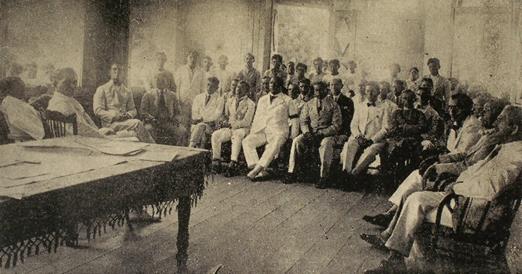En la foto siguiente de ese mismo informe de 1936, que retrata a los fundadores de la Cooperativa Espírito Santo de Coari (Figura 6), el alcalde se presenta rodeado de sus socios, lo que demuestra que existe un círculo de apoyo alrededor de él y dice quiénes lo componen.