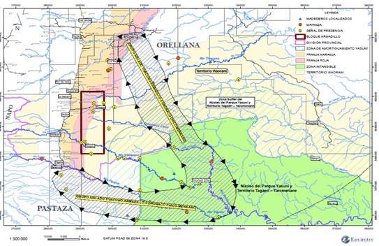 Finalmente, el Estado ecuatoriano decreta una zona de protección en el Plan de Medidas Cautelares (PMC); en dicho plan se establece delimitar el accionar de poblaciones colonas y waorani cercanas a la zona ZITT, con la finalidad de evitar y minimizar los potenciales contactos entre estos grupos. Esta delimitación ha generado conflictos entre las poblaciones colonas y las familias waorani: los primeros se han visto afectados porque no pueden desarrollar ningún tipo de actividad y podrían ser reubicados.31