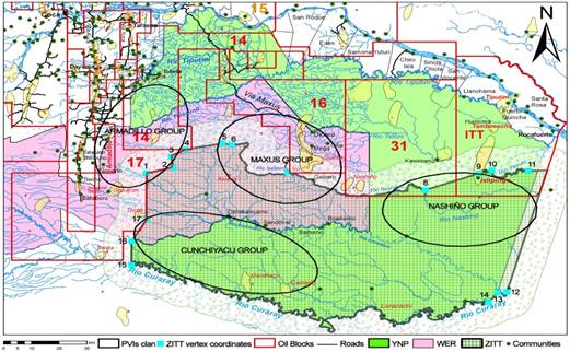 El PNY como espacio de conservación y protección ha estado presente en las políticas públicas del Estado ecuatoriano desde 1979, el año de su creación.27 Estas políticas estuvieron a la par de la delimitación de las fronteras y los territorios tanto de los waorani y kichwas que habitan en el parque, como de los PIAV. Sin embargo, tanto el PNY como el territorio waorani y el territorio PIAV han estado inmersos en actividades de exploración y producción petrolera, lo que ha provocado constantes conflictos entre organizaciones de protección de derechos humanos, ecologistas y académicos, por la agresiva redefinición de espacios del PNY, de la ZITT y del territorio waorani para legitimar la explotación del petrolero en áreas prohibidas por la legislación nacional (Villaverde et al., 2005; Andrade, 2010; Pappalardo, Marchi y Ferrarese, 2013).