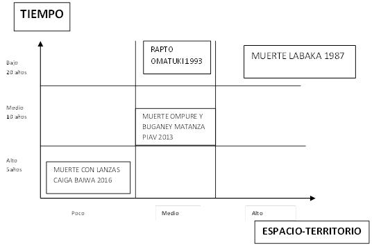 La memoria oral de la cultura waorani está relacionada con la guerra y con la forma en que esta construyó la cotidianidad de las diferentes familias clánicas y los espacios vitales que las rodeaban, creando fronteras alrededor del imaginario de una ecología (selva inagotable en recursos) y de enemigos a quienes había que eliminar para vivir en paz. Esto configuró complejas relaciones de parentesco con sus vecinos étnicos, considerados enemigos o “cuwuri” (Cabodevilla, 1998; Fuentes, 1998; Trujillo, 2001, 2006, 2011; Proaño, 2011). La guerra fue la principal forma de reproducción cultural de muchos grupos amazónicos (Clastres, 1968; Harner, 1978; Rival, 1999; Descola, 2001). Para los waorani, la guerra entrelazó complejos sistemas de alianzas, intercambios simbólicos, mágicos-shamánicos y lealtades grupales, lo que dinamizó una particular forma de resolución de conflictos de tipo intra y extraclánicos (Rival, 1998; Trujillo, 2011; Narváez, 2017):