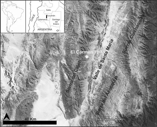 Considerando el contexto sociopolítico del Período Tardío, las primeras incursiones arqueológicas a la quebrada El Carmen iniciadas en la década de los noventa (Nastri, 1995, 1997-1998, 1999a, 2001a, 2001b) tuvieron como objetivo contribuir al conocimiento de los asentamientos de la época. Como resultado de los sucesivos trabajos de campo, se reveló la existencia del poblado El Carmen 1 (Figura 1) con un tamaño reducido en comparación con otros asentamientos tardíos de la región como Tolombón, Quilmes, Fuerte Quemado, Rincón Chico, entre otros.