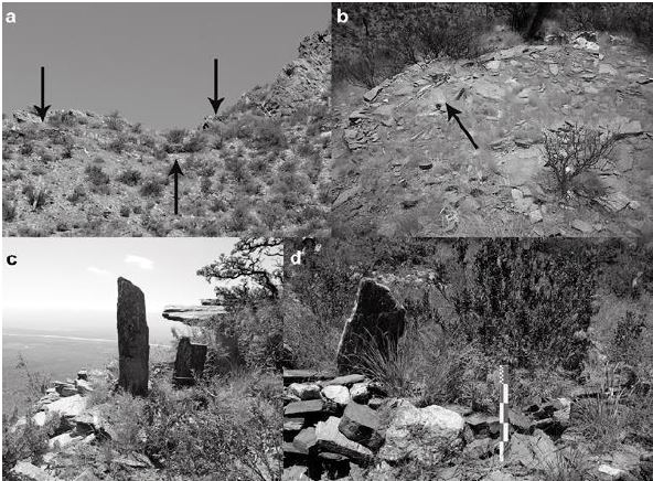 Los sectores iv y viii (Figura 5) se atribuyeron a vías de circulación (Coll et al., 2015), teniendo en cuenta el tipo de arquitectura registrada. El sector iv5 se localiza sobre una abrupta cornisa que facilitaría la comunicación entre los sectores iii y viii. En el sector viii se registraron dos anchas estructuras que habrían formado parte del camino que conectaría a los habitantes de los sectores bajos con los residentes de los sectores v y vi.