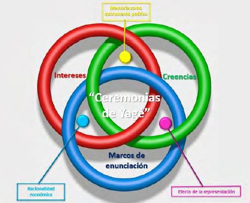 Articulando las creencias y los intereses. La memoria social no es de una rememoración objetiva del ascenso lineal de la historia, sino que es producto de una elaboración política del pasado. Por ejemplo, Rappaport (2000) expone cómo la comunidad Nasa Yuwe (Colombia) construye activamente su pasado, no por una simple confusión histórica, sino como una forma de elaborar metáforas sociales que operan como “un arma para enfrentar su situación de subordinación social” (Rappaport, 2000: 29). El pasado sería, en esta medida, construido desde el presente; cada generación reinterpretaría, actualizaría y rearticularía el conocimiento de su historia por medio de imágenes míticas para comprender su realidad actual y desarrollar estrategias de cohesión social, defensa y reivindicación de sus derechos territoriales.