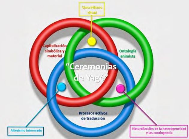 Es necesario considerar que la ritualidad chamánica se encuentra siempre abierta a constantes resignificaciones para poder articularse con nuevos contextos sociales, puesto que, si se cree que esta poseería una esencia o autenticidad, no se podría explicar su amplia difusión geográfica y su vitalidad actual. Por tanto, si la capacidad de respuesta de las ceremonias de yagé al devenir histórico ha permitido su persistencia ingeniosa hasta la actualidad, en consecuencia, su constante reinvención es la condición necesaria de su mantenimiento, y por ello es fundamental suspender los juicios críticos o celebratorios a su hibridación actual. Por este motivo, las ceremonias de yagé no tendrían cualidades inmanentes, sino que sus características serían producto de una condensación dinámica de un conjunto heterogéneo de relaciones históricas.