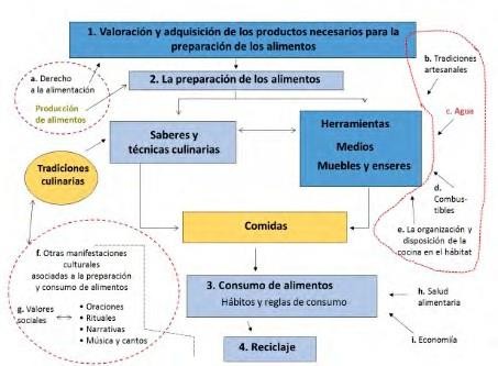 Desde el enfoque patrimonial, la atención está dirigida al hecho de que las tradiciones de la cocina tienen un alto valor identitario, expresan la diversidad cultural y son un nodo fundamental del sistema de seguridad y soberanía alimentarias de las comunidades. El centro de esta discusión es el engranaje entre la cocina y la comida como un bien cultural (que produce identidad, sentido de pertencia y sentido de continuidad histórica), y el derecho a la alimentación.