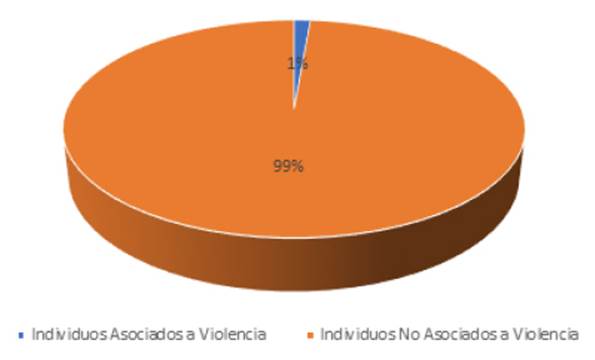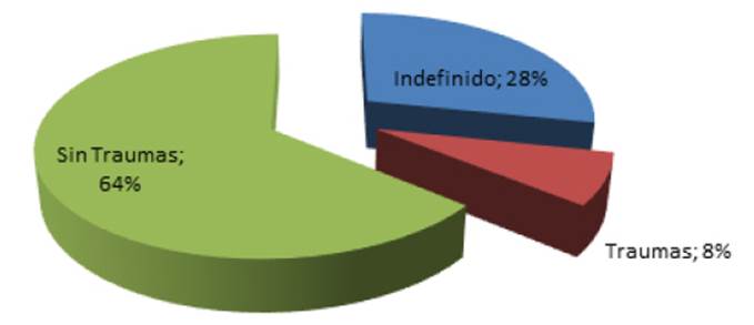 La arqueología muestra muy pocas evidencias que sustenten el uso de la agresión entre los Muiscas, aunque estos hubieran sido descritos por los españoles como un pueblo pre-estatal en proceso de unificación (Fernández de Piedrahita, 1668/1881: 21-43). En las investigaciones arqueológicas anteriores que fueron citadas en este artículo la muestra de violencia se reduce al 1% (véase Figura 1), aunque este dato puede ser discutible pues esta única muestra tomada en Sopó en 1935 no evidenció traumatismos en los cuerpos (Broadbent, 1965). Con base en ello, se puede inferir que los Muiscas desarrollaban una vida pacífica, aunque no se puede descartar que existieran omisiones en las investigaciones anteriores ya que las huellas de agresión no siempre se encuentran en el tejido óseo.
