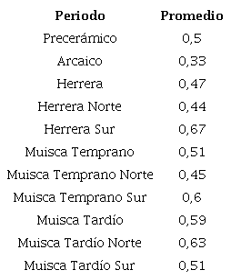 Sin embargo, uno de los mayores riesgos en el uso de conjuntos de tumbas procedentes de un solo sitio, o de tumbas de diferentes cementerios, es que tal vez no todas pertenezcan al mismo periodo, por lo cual es posible que la variabilidad observada en realidad corresponda a diferencias temporales (p. ej. Giedelmann, 1999). Por ejemplo, el análisis realizado por Boada (2000) del cementerio de Porta Alegre en Soacha, asume el conjunto de 117 tumbas como perteneciente al mismo periodo (Muisca), aun cuando las tumbas pueden ser ubicadas al menos en dos periodos diferentes (Therrien y Enciso, 1991), por lo que quizá el grado de diferencia entre ellas, aunque minúsculo, no necesariamente refleje diferencias de tipo político sino cronológico.