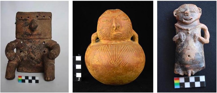 La riqueza material que ha sido recuperada da cuenta de la complejidad sociocultural de los grupos que poblaron esta zona en tiempos prehispánicos. Muchas de las piezas orfebres y cerámicas encontradas en excavaciones arqueológicas o guaqueadas en los últimos años consisten en figurinas humanas con diversas características tanto de forma como decorativas, las cuales han sido estudiadas desde hace décadas debido a la belleza y complejidad de su elaboración. Se destaca el trabajo de Arango (1976) con colecciones privadas, donde propone que en las primeras etapas de elaboración de la cerámica antropomorfa se daba prominencia a la cabeza por encima del resto del cuerpo: “Por eso es por lo que encontramos un cacique -la manera común para denominarlos- con una excelente reproducción de su cabeza. Al tanto que su cuerpo es casi amorfo, por lo general redondo y su parte inferior termina bruscamente recortada. En la base sobresalen unas como piernas, igual como acontece con los brazos, a la altura de los hombros” (p. 44). Según Arango (1976), con el paso del tiempo fueron siendo elaboradas figurinas de mejores proporciones anatómicas, así como nuevas y más dinámicas posiciones corporales. Este autor también propone que las figurinas podrían estar representado a los líderes (caciques y sacerdotes), así como al difunto, el cual ostentaba alguna posición de poder y por lo tanto “podía darse el lujo de hacerse reproducir en arcilla para, más tarde ser depositados con el resto de su menaje doméstico, en su traslado al mundo de ultratumba” (p. 49). Una característica importante de estas piezas antropomorfas es la importancia que se daba a representar el sexo (femenino o masculino), si bien, en muchos casos esta característica no es clara o incluso, es ambigua.
