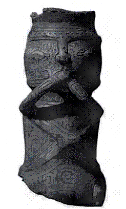 Estudios más recientes continúan demostrando que los sitios de la TPA son más antiguos en el Bajo y Medio Amazonas (Neves, 2010; Neves y Morais, 2012; Neves et al., 2014). Según Roosevelt (1991), en el arte marajoara, la mujer-chamánanaconda está representada en las efigies de las urnas funerarias, en las que lleva aretes y ropa elaborados con diseños de serpientes. En una vasija de cerámica de estilo Pacoval de la fase Marajoara, entre los siglos x y xi d. C., la mujer-chamán tiene dibujos de piel de anaconda en sus brazos y en su ropa (Roosevelt, 1991; 2014) (véase Figura 1).