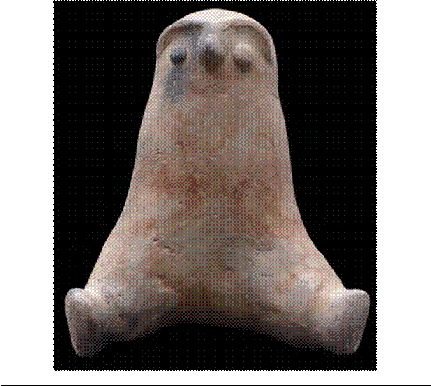 Varias de estas estatuillas fueron colectadas en los palafitos. Una en especial llama la atención aquí: un búho con trazos antropomorfos. El ave podría ser un animal auxiliar del chamán en lo que Reichel-Dolmatoff (1988) llama “vuelo chamánico” que, como dijimos antes, tiene que ver con el desprendimiento del espíritu del cuerpo humano. En este contexto, el búho sería un animal que auxilia al chamán en su vuelo. Además, podría fungir también como animal mensajero, ya que esta ave se destaca por su gran capacidad de visión. De hecho, en la estatuilla en mención, llaman la atención los ojos del búho: el chamán que todo ve (Navarro, 2018b) (véase Figura 7).