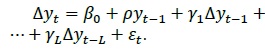 Δ𝑦𝑡=𝛽0+𝛽1𝑦𝑡−1+𝜀𝑡−𝑦𝑡−1;