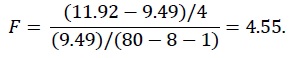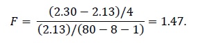 Ao aplicar a Equação 02 ao primeiro conjunto de hipóteses em que 𝑦𝑡 = IPCA e 𝑥𝑡 = ICV, tem-se que g = 4; n = 80; p = 8 e expressão numérica da Equação 02, fica: