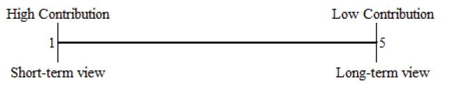 In conclusion, Hypothesis 3 was accepted, as this means that the higher the contribution, the higher is the short-term view of the respondent.