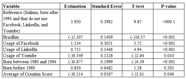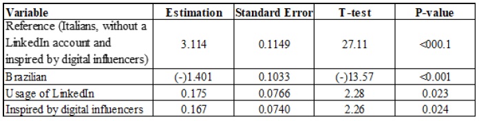 Moreover, considering the control variables, it is possible to conclude that if the respondent uses LinkedIn, the PDI score will raise 0.175.