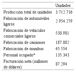 En el año 2001, del total de unidades producidas en Brasil 1,674, 522 unidades, sólo se destinaron a la exportación 248,272 unidades (79.4% automóviles ligeros, 15.8% vehículos comerciales ligeros, 2.6% camiones y 2.1% omnibuses). Para el año 2013, la producción automotriz ascendió a 3,712,736 unidades, de las cuales 565,111 fueron destinadas a la exportación: 81.6% automóviles ligeros, 12.5% vehículos comerciales ligeros, 4.3% camiones y 1.6% omnibuses (ANFAVEA, 2016).