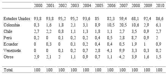 algunos otros destinos son Colombia, Chile, Perú, Ecuador y Venezuela (véase Tab 3).