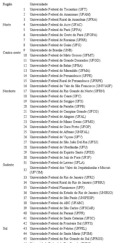 A lista das universidades contempladas pelo recorte da pesquisa encontra-se no quadro 1: