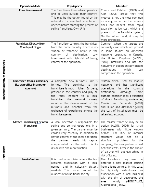 Table 1 shows the main entry methods of franchises, key aspects and comments on the available literature of each.