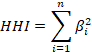 Em relação à competitividade, conforme apresentado na Tabela 1, foi utilizado o Índice de Herfindahl-Hirschman (HHI), calculado a partir da Equação 1, em que βi representa a proporção do valor do Ativo da empresa i em relação ao valor total da amostra.