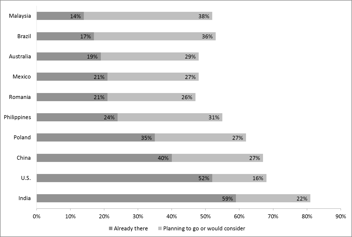 Statistica (2017)India is the leading player in the global outsourcing industry, but other countries have also positioned themselves to serve this market. An A.T.Kearney (2015) report points out that China and Mexico are alternatives that offer cost advantages, due to lower corporate taxes and interest rates. Bulgaria, Brazil and Egypt are considered rising IT outsourcing locations and strong regional players. Other countries with the potential to become global players, with specialized IT services, are Malaysia, the Philippines, and Poland. Figure 3 presents outsourcing location choices of 140 global companies.
