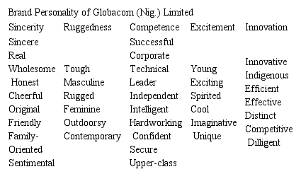 Furthermore, this study employed a confirmatory approach, making it possible to achieve a glimpse of the perception that consumers have of the Globacom Brand as a wholly Nigerian Brand, enabling the identification of the dimensions of brand personality which were labelled as Competence, Sincerity, Ruggedness, Innovative, Sophistication and Excitement.
