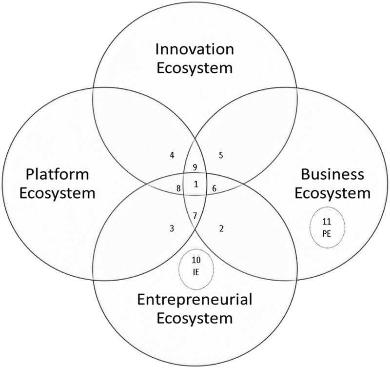 The research results point to an INT-E framework encompassing four interrelated ecosystems concepts:
