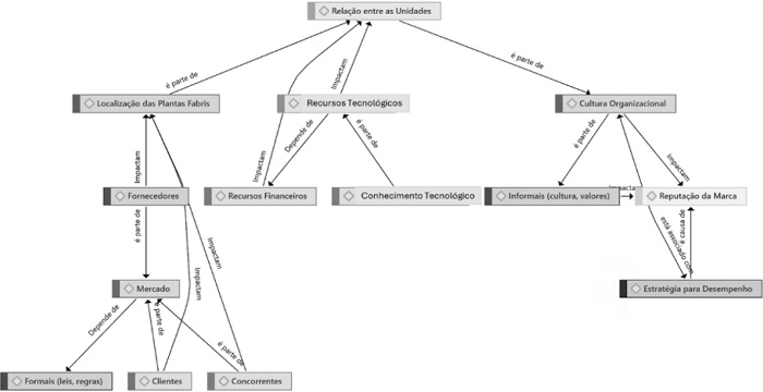 O presente capítulo aborda os resultados obtidos por meio da análise dos dados primários e secundários coletados ao longo desta pesquisa. Observando a Figura 2, pode-se perceber que a relação entre as subcategorias caminha por dois pontos distintos, um deles é a visão baseada na indústria e o outro, a visão baseada em recursos. Em diversos momentos, esses pontos se relacionam com a visão baseada em instituições. Esses movimentos constroem a cultura organizacional, a qual está diretamente ligada à estratégia da empresa.
