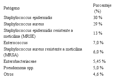El agente causal más frecuentemente asociado a la osteomielitis es el Staphylococcus aureus, bacteria gram positiva la cual se encuentra frecuentemente en las superficies cutáneas y mucosas del cuerpo14. Las infecciones producidas por el Staphylococcus epidermidis (Staphylococcus coagulasa negativo) se observan más frecuentemente en pacientes expuestos a la colocación de implantes corporales15, en el caso del desarrollo de la osteomielitis postquirúrgica, postraumática, de origen nosocomial y de evolución crónica por lo general son los bacilos gram negativos los que están asociados con estos procesos16. La Pseudomona aeruginosa está relacionada con la aparición de osteomielitis en el paciente con pie diabético, mientras que la afectación por parte de microorganismos anaerobios se observa con mayor frecuencia en pacientes con lesiones cercanas a la cavidad oral, pacientes con ulceras por presión, pie diabético isquémico y lesiones producidas por mordeduras. Finalmente cabe mencionar que las infecciones micóticas asociadas al desarrollo de osteomielitis por lo general ocurren en el paciente inmunodeprimido, dentro de estos agentes causales encontramos con mayor frecuencia a la Candida spp., Aspergillus spp., Mucor spp6 (Tabla 1).