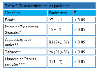 Mucho se ha discutido sobre la inmadurez de la zona de transformación en las adolescentes, lo que las hace más susceptible a los cambios citopáticos inducidos por el virus. En Venezuela, según Echeverria y col.32 la actividad sexual suele iniciarse alrededor de 14 a 17 años, coincidiendo con los datos de presente estudio La mayoría de las pacientes (83) usaban anticonceptivos orales y no el preservativo. Estudios a largo plazo revelan que el uso de anticonceptivos orales (ACO) por más de 5 años se asocia a un mayor riesgo de desarrollar cáncer de cuello uterino en mujeres con VPH10.