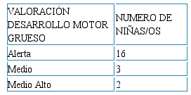 El desarrollo motor grueso se produce en sentido cefalocaudal, y se refiere a los cambios de posición del cuerpo y la capacidad de control que se tiene para mantener el equilibrio, la postura y el movimiento5. Las alteraciones del desarrollo motor grueso tienen una base clínica que debe ser reconocida e identificada tempranamente, estas aparecen por el deficiente funcionamiento de un SNC incompleto