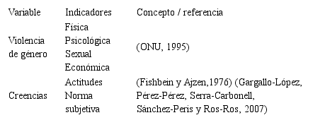 Dentro de las conductas violentas que se ejercen en la sociedad, existen las creencias que respaldan la violencia de género, las creencias se definen como información que tiene el sujeto acerca de las características del objeto. Las creencias del individuo determinan su actitud y la norma subjetiva, porque finalmente son las creencias quienes también determinan sus intenciones y su conducta (Fishbein y Ajzen citado por24 lo que conlleva a que contribuyan en la reproducción y persista en el tiempo este tipo de violencia, por medio de actitudes y patrones que terminan rigiendo el comportamiento de los individuos.