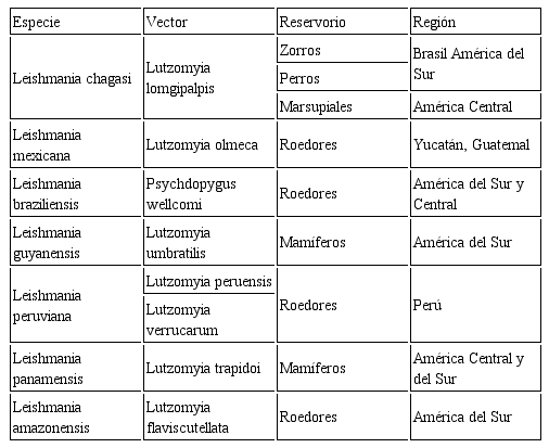 Tabla 4. Principales vectores y reservorios de las especies de Leishmania en las Américas