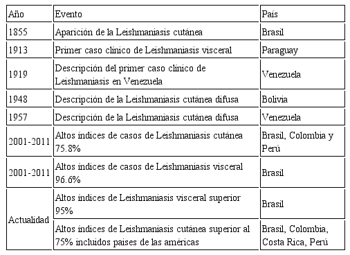 Eventos históricos de la Leishmaniasis en las Américas
