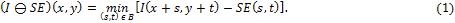 where: min the minimum gray level contained in SE, (s, t) defines the size of the SE and (x, y) represents the position of the pixel under study.