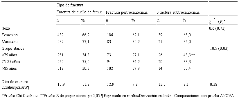 Materials and methods: A descriptive, retrospective study was conducted through an analysis of the Hospital Luis Vernaza database, including patients diagnosed with hip fracture (ICD-10 S720, S721, S722) in the period between 2012 and 2015.