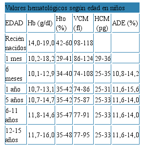 La OMS define, a título indicativo, los límites biológicos que deben servir de punto de referencia para definir la anemia, tanto con el ámbito individual como en las poblaciones. Se considera anemia en los niños, cuando los niveles de hemoglobina están por debajo de los <11,5 g/dL; cabe mencionar que los valores de corte varían según la edad y el sexo. Así, la anemia se clasifica en leve (10 a 10,9 g/dL), moderada (8 a 9,9 g/dL) y severa (<8g/dL)20.