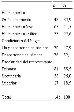 Otro aspecto a considerar es el estado del hogar y sus condiciones, la alta frecuencia de hacinamiento encontrada es similar a la mostrada por Álvarez et al.10, en un consultorio de un municipio rural de Venezuela, donde evidenciaron más de 80% de hacinamiento. Asimismo, en el reporte llevado a cabo en Colombia, se observó el hacinamiento en 41,5% de los niños analizado7. Aunado a esto nuestro reporte demuestra que un gran número de estos hogares adicionalmente no tienen lo servicios básicos, demostrando que las entidades gubernamentales también deben asumir sus competencias para mejorar las condiciones en términos de salud pública. Mientras que los centros de salud deben promover actividades educativas y de formación de las madres y representantes dada la baja escolaridad presente en un alto número de tutores.