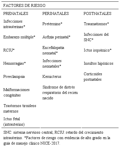 Prevalencia, factores de riesgo y características clínicas de la parálisis cerebral infantil