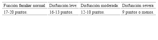 Instrumentos: El APGAR Familiar7. fue el instrumento utilizado para evaluar las relaciones familiares, validado en población colombiana8,9,10, las cuales se clasifican en la tabla 1: