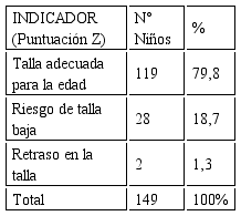 Tabla 1. Peso para la talla de 149 preescolares de 3 hogares y 1 jardín infantil de la ciudad de Cali