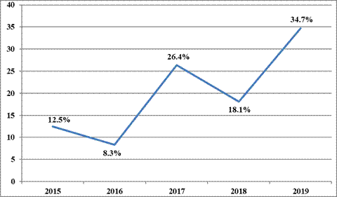 In Iraq, the suicidal rate is lower than in other countries because of religion and a strong relationship between family members throughout the country. Religion plays an important role in decrease the level of suicide. Also, there is respect to a belief in an afterlife within our country and other Muslim countries, which protect against hopelessness feeling which is described as an important predisposing factor for suicide. The increasing trend of suicide in our city between 2015 to 2019 is similar to that of the increasing trend in studies done in India18 and in Egypt where they report the same trend of the increasing rate of suicide during the five years from 2005 to 200919. Regarding levels of education, we show that 24 cases (33.4%) had primary or secondary levels of education, similar to other studies reported in the Kurdistan Region of Iraq where 41.3% of cases have the same level of education20. About 44 cases (61.1%) of the victims in the present study were unmarried, this is similar to other studies reported in the Kurdistan Region of Iraq where 53.7% were single20. More than half of the 43 cases (59.8%) were either a free worker or housewife, data that coincide with the observed in the Kurdistan Region of Iraq, where 46.2% were housewives and 8.7% unemployed20.