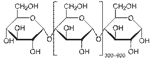 Estructuralmente el almidón es un poliglicano (polímero de unidades de D-glucosa), compuesto por una mezcla de polisacáridos conformada por amilosa (20%), amilopectina (80%), y una fracción minoritaria (de 1% a 2%) de conformación no glucosídica como lípidos y minerales, aunque esto depende de su origen botánico4.