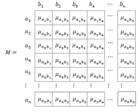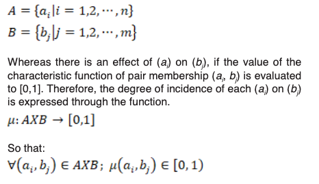 Where μ represents the values of the Cartesian plane formed by the set of pairs of elements evaluated, defining the direct incidence matrix (figure 1), through which the cause-effect relationships that occur with different degrees between the elements of (A)- causes and the elements of (B)- effects are shown.