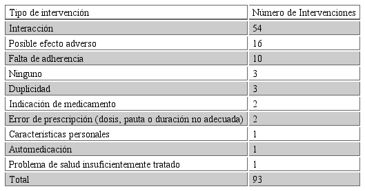 Estado de la polimedicación y clasificación de las interacciones medicamentosas detectadas