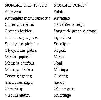 Tabla 1. Plantas con mayor evidencia científica