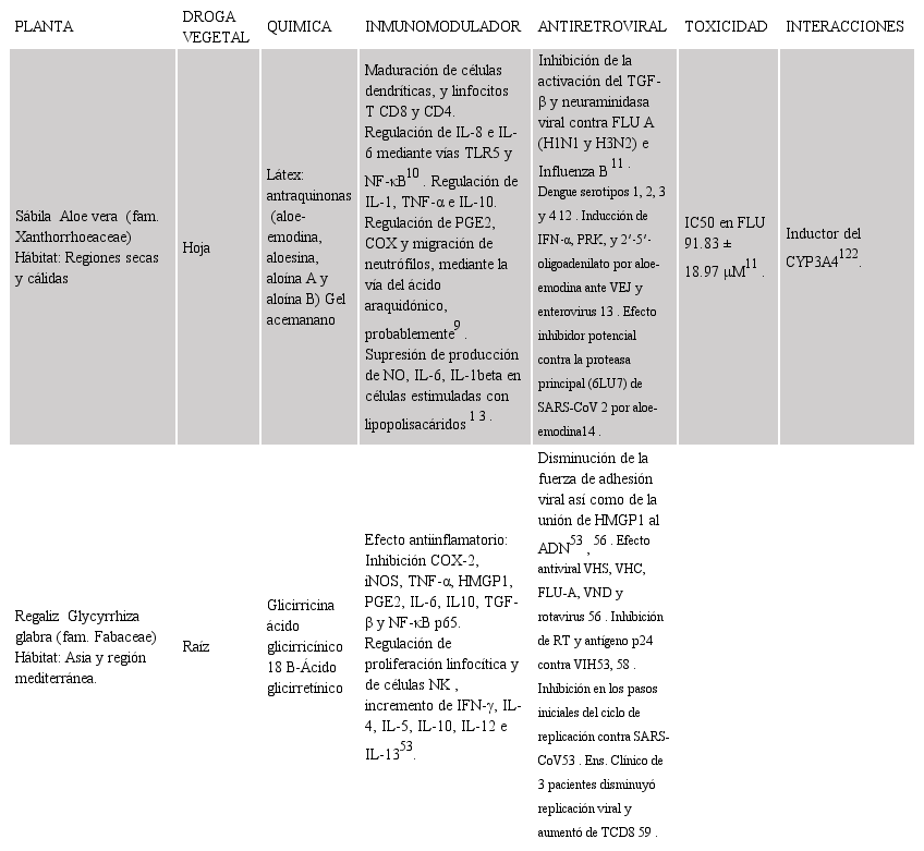 Revisión del efecto antiviral e inmunomodulador de plantas Medicinales a propósito de la pandemia COVID-19