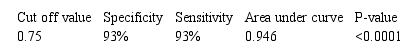 Figure 5. Evaluation of cutoff (ADC) value to calculate Gleason 6 disease. The area below the curve=0.946
